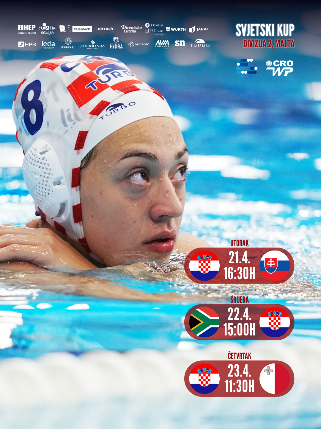 Mia Šimunić, izbornica hrvatske ženske seniorske vaterpolske reprezentacije odredila je sastav koji će predstavljati našu domovinu sljedećeg tjedna na turniru Divizije 2 Svjetskog kupa na Malti, od 21. do 26. ovog mjeseca.